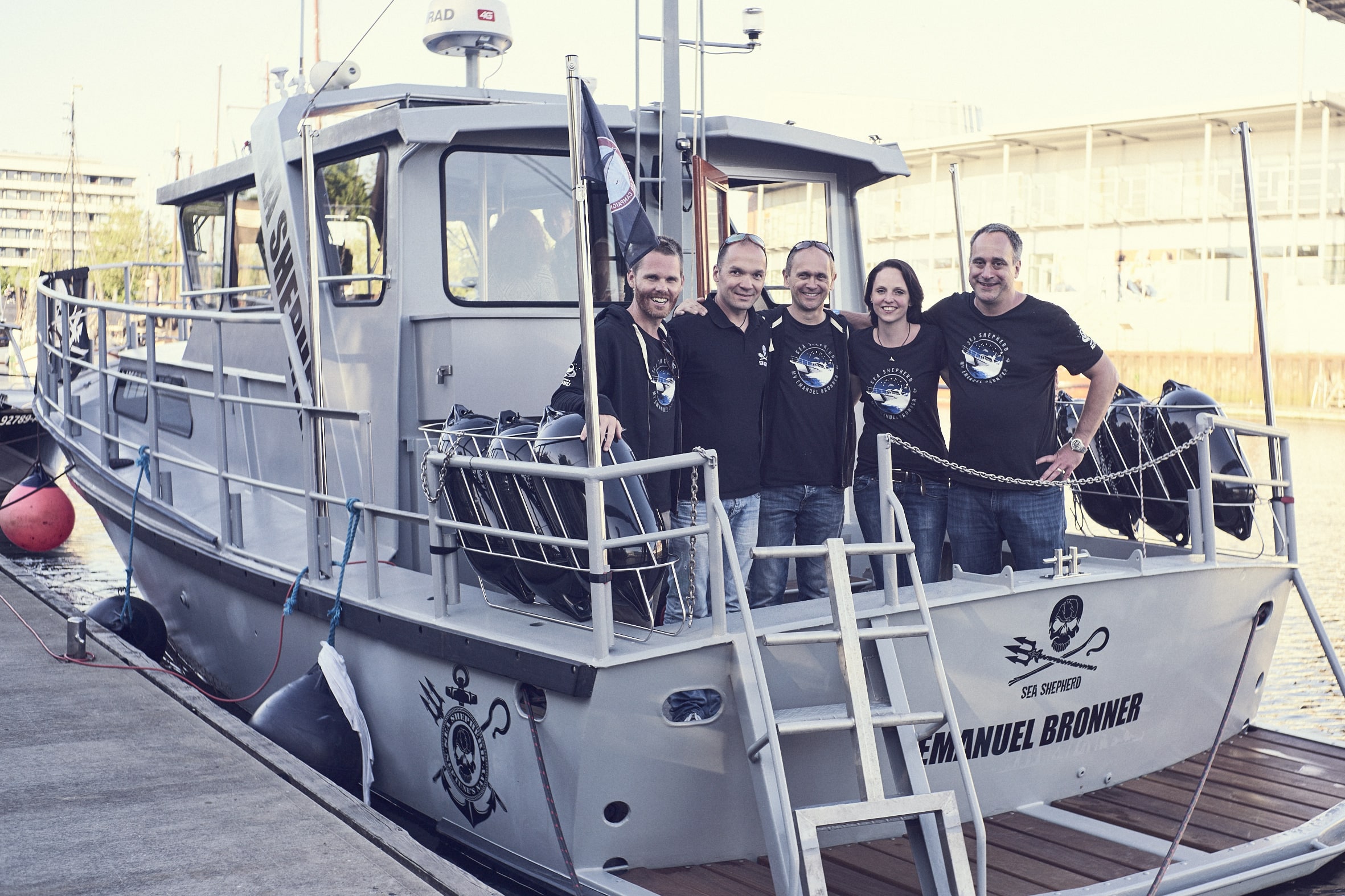 On June 1st I brought my family to Bremen, Germany where the ship – Sea Shepherd Germany’s first ship – was docked, ready to be unveiled to press and supporters. The more I’ve gotten to know the amazing individuals involved in this organization, the more I’ve understood that the soul and mission of Dr. Bronner’s and Sea Shepherd is All-One! Motivated by a mutual concern and compassion for the environment and wildlife, both organizations hold a deep belief in the power and responsibility of individuals to take direct action to right the wrongs of the world.