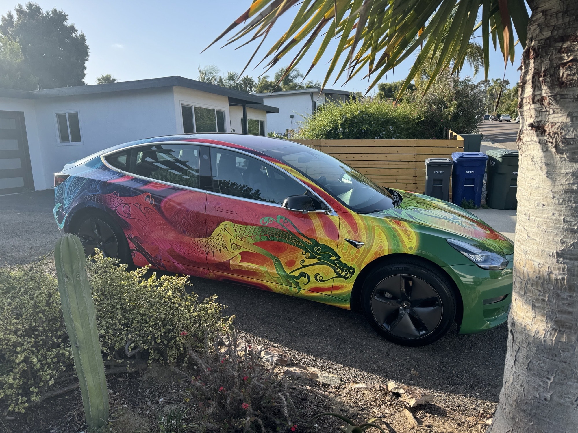 Yesterday, I was charging my Tesla at the dealership in Encinitas when I saw two veterans waving a trans pride flag in protest. I was on a call and didn’t engage—but I appreciated their presence and their act of solidarity. Ironically, here’s a photo of my Tesla adorned with the rainbow kundalini dragon spirit—that vibrates both male and female—who came to me in a medicine vision in 2018. That vision followed the heart wrenching realization when I saw myself wielding a samurai sword that had deeply cut the hearts of women who loved me—including both my former and my current wife. Then the dragon carried me to the Rasta Lion heart of God, booming Love across the universe. Dawn of a New Rising Son is also a play on how Spirit instructed me in these deep medicine journeys.
